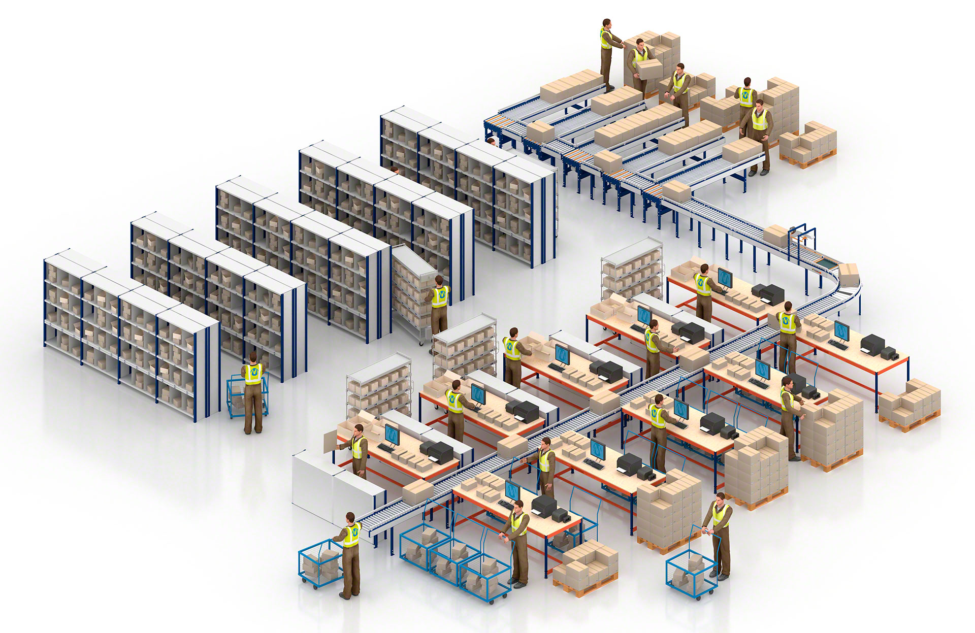 Ja. Jedes Fördertechnik im Lager benötigt eine Steuerungssoftware für den Betrieb des Systems. Das Softwareprogramm sorgt dafür, dass sich die Ladeeinheiten vorwärts bewegen, anhalten und drehen. Dies erfolgt auf der Grundlage von zuvor parametrisierten logischen Abläufen, die die Strecke, die Anzahl der Förderbänder und die übrigen Elemente des Fördersystems berücksichtigen. Die Steuerungssoftware ist nicht mit dem Lagerverwaltungssystem (LVS) zu verwechseln, das als obere Schicht fungiert. Die komplexesten Kreisläufe erfordern neben dem Steuerungsprogramm ein leistungsfähiges Lagerverwaltungssystem, wie Easy WMS von Mecalux, das die Ladeeinheiten von den Ausgangspunkten zum Zielort gemäß den für jede Anlage spezifischen Kriterien (Reihenfolge, Sequenzierung, usw.) bewegt.