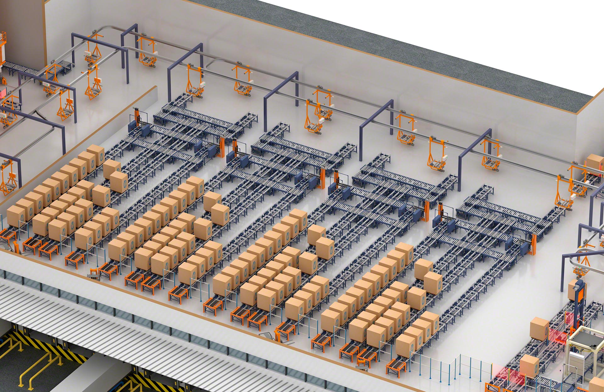 Die Elektropalettenbahnen beschleunigen den Palettenumschlag, ohne dass das Lagerpersonal eingreifen muss. Die Produkte kommen automatisch an der Be- oder Entladeposition an, und der Warenein- und -ausgang erfolgt mit höchster Geschwindigkeit und Agilität.