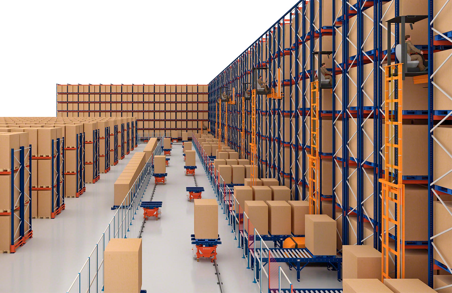 Zwar lassen sich autonome mobile Roboter leichter in das Lagerlayout integrieren als Elektropalettenbahnen (sie benötigen keine Schienen oder Sicherheitszäune), doch sind Elektrohänge- und Elektrobodenbahnen in Szenarien mit hohem Palettenumschlag in der Regel die optimale Alternative, da die Bewältigung eines solchen Arbeitsvolumens mit AMR-Robotern eine sehr große Flotte erfordern würde.