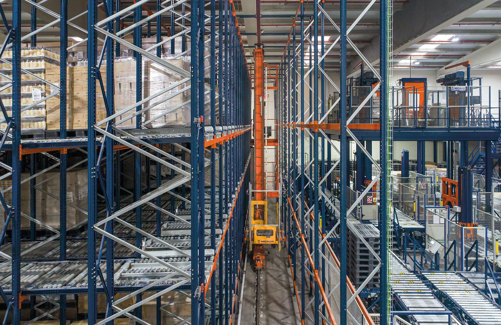 - Hohe Flexibilität: Die große Reichweite der Mecalux Regalbediengeräte erlaubt die Anpassung des Systems an die Anforderungen hinsichtlich der Tragfähigkeit, Höhe und Lagerdurchlaufzeiten.