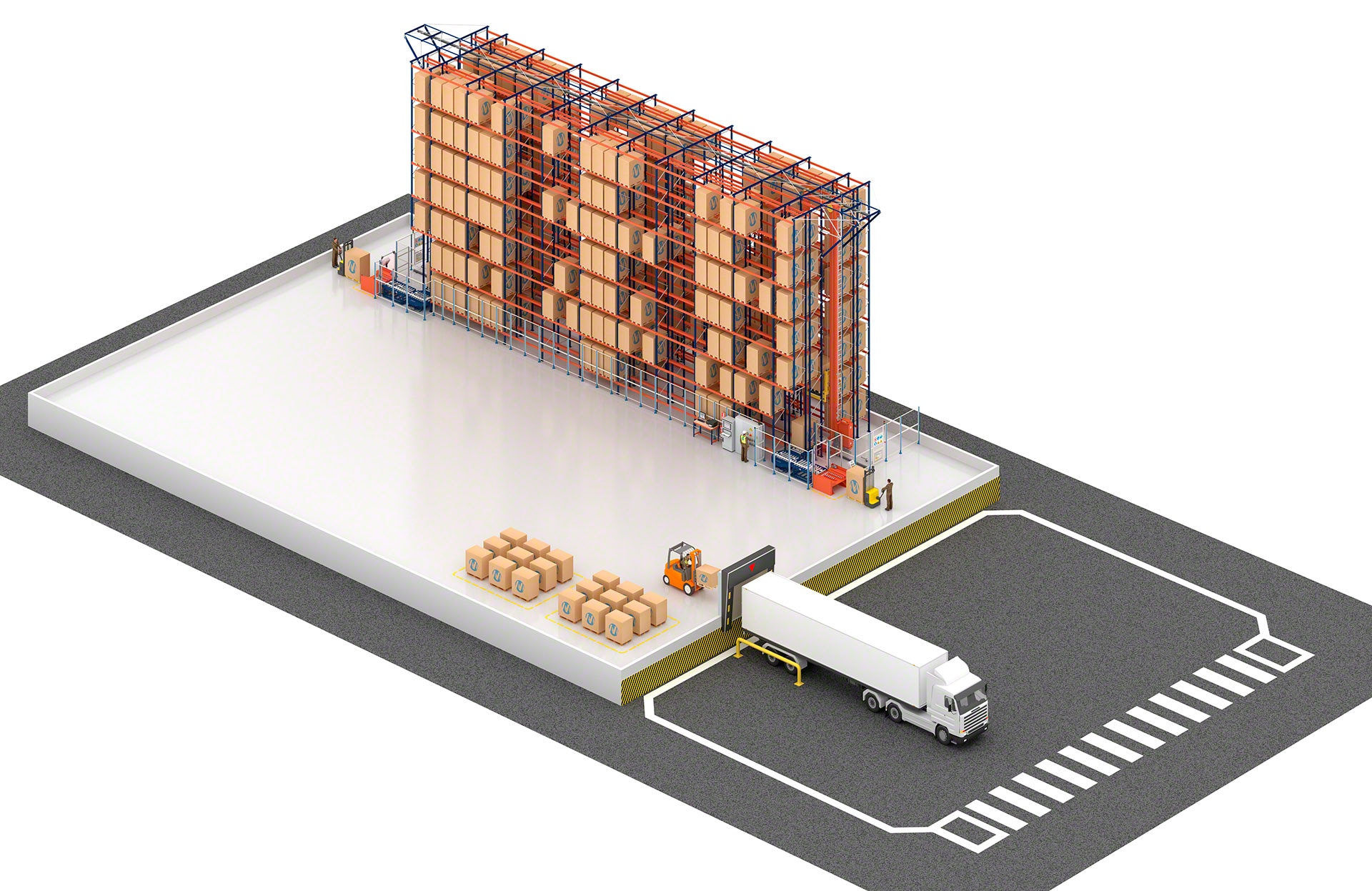 Lagersystem, das zur automatischen Ein- und Auslagerung von Paletten konzipiert wurde und die Produktivität steigert sowie die Lagerkapazität erhöht.