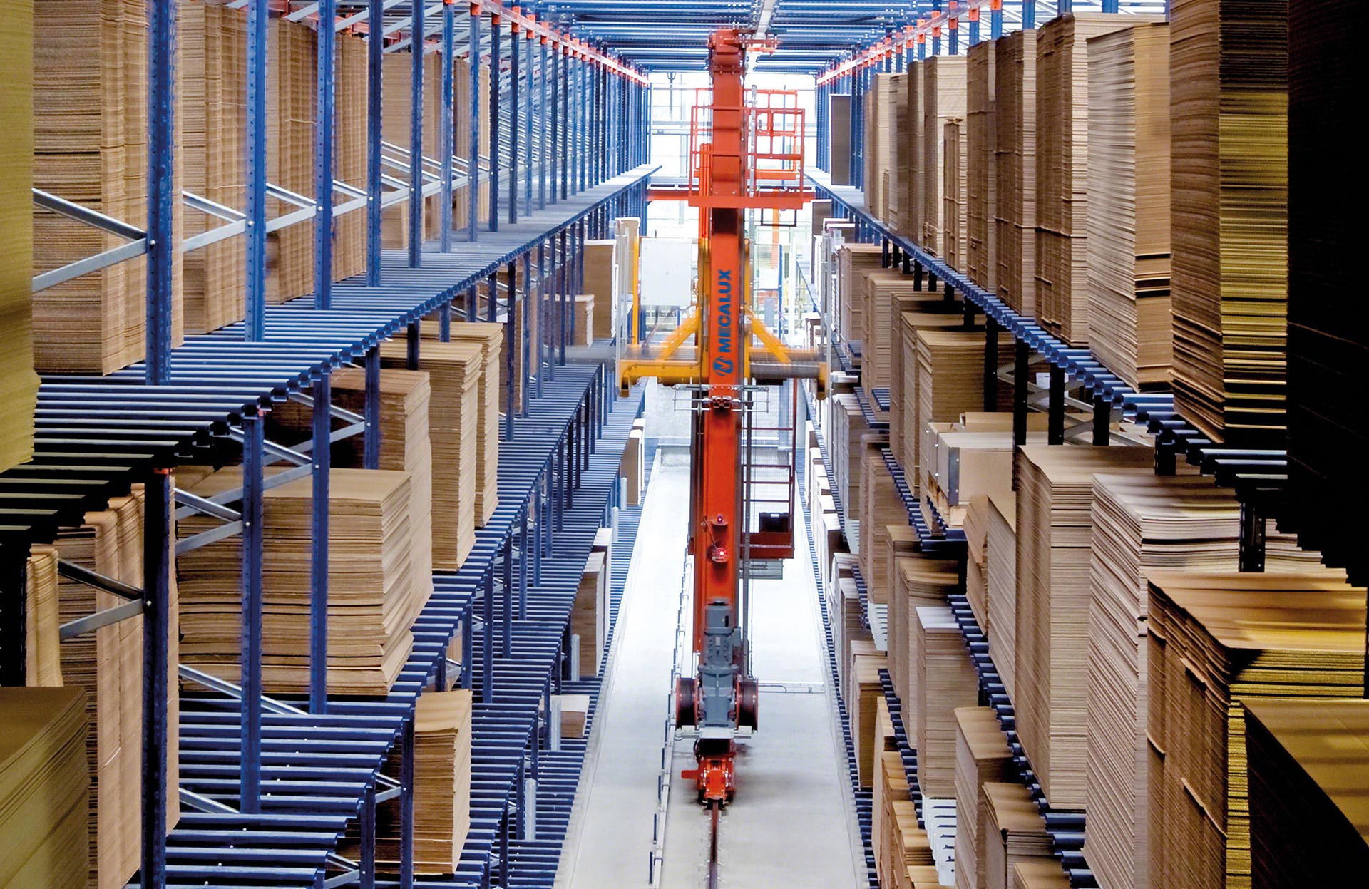 Die Regalbediengeräte von Mecalux sind mit modernster Technologie ausgestattet, die die Produktivität des Lagers erheblich steigert und die Raumnutzung zur Erhöhung der Lagerkapazität maximiert. Sie tragen auch dazu bei, die mit manuellen Vorgängen verbundenen Fehler und Risiken zu verringern