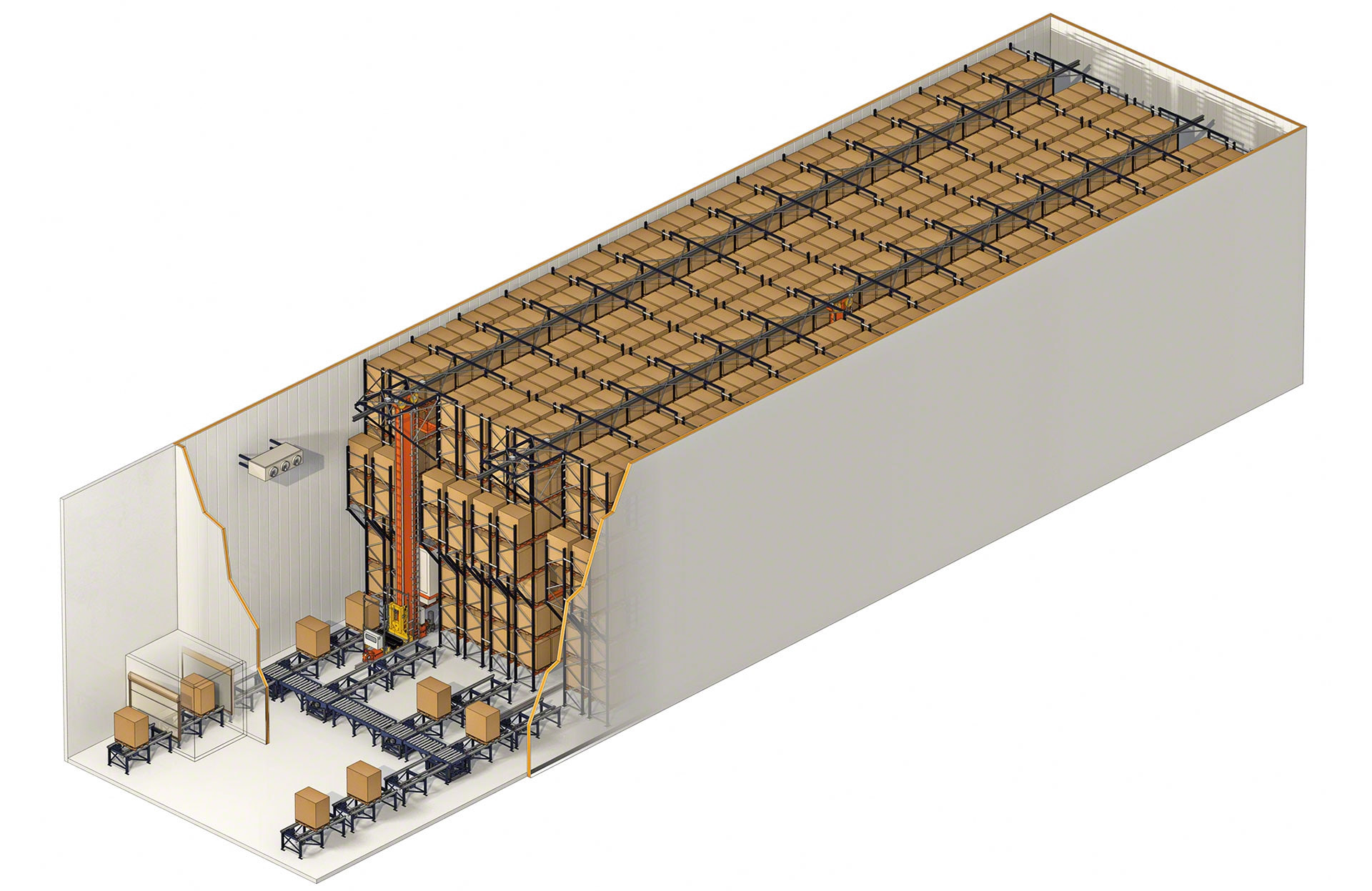 Die Regalbediengeräte von Mecalux können in einem Temperaturbereich zwischen -30 ºC und +40 ºC eingesetzt werden.