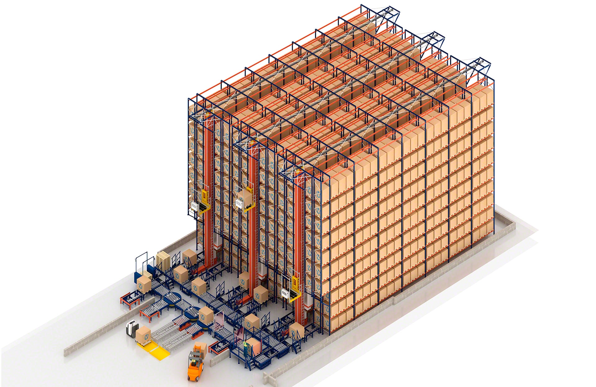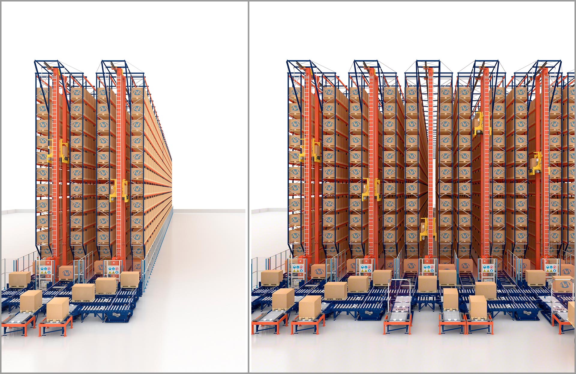 Mit dreiseitigen Regalbediengeräten von Mecalux können konventionelle Schmalganglager bis zu einer Höhe von 14 m schnell, kostensparend und ohne Veränderung der Lagerstruktur automatisiert werden. Bei der Automatisierung der anderen konventionellen Lagersysteme ist es jedoch erforderlich, die bestehenden Strukturen der Anlage zu ersetzen. Mecalux berät seine Kunden beim Entwurf und der Implementierung des automatischen Lagers, das ihren Anforderungen am ehesten gerecht wird.