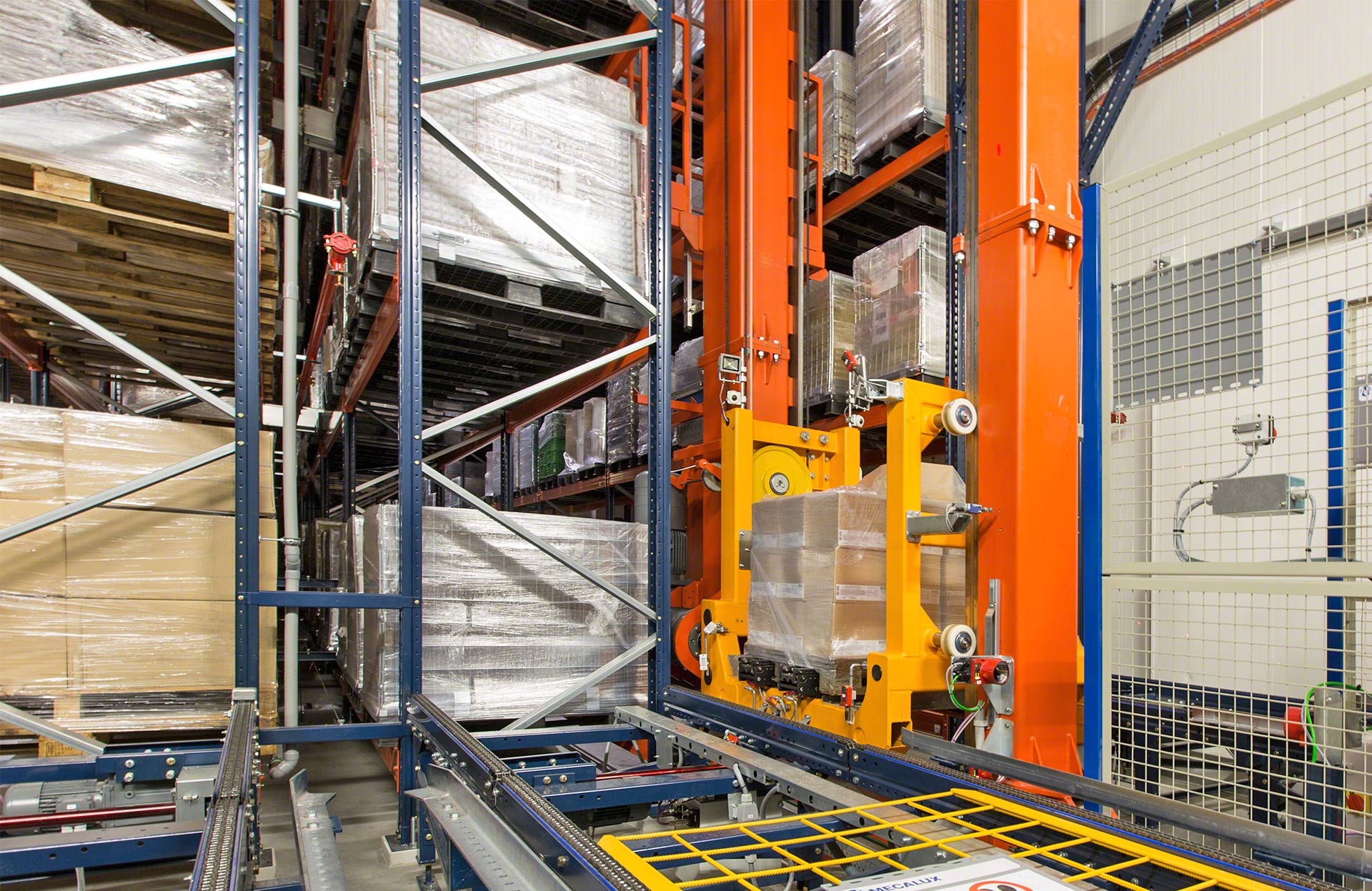 Mit dem Regalbediengerät wird die Ein- und Auslagerung von Paletten vollständig automatisiert