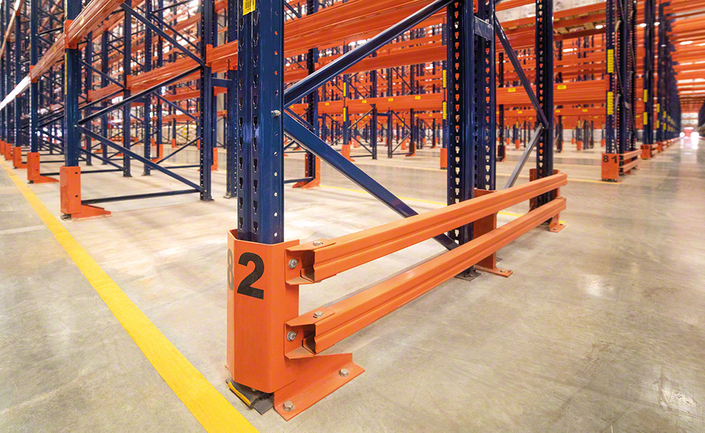 Bei der Anordnung der Waren innerhalb der Regale werden ihre Eigenschaften und ihre Größe berücksichtigt. Die Paletten haben ein Größe von 1000 x 1200 mm, können aber unterschiedlich schwer sein (von 1050 kg bis maximal 1350 kg). So sind beispielsweise die unteren Ebenen der Regale für Großcontainer mit Massenware bestimmt, um ein versehentliches Herabfallen dieser schwereren und gefährlichen Lasten zu verhindern, und auf den höheren Ebenen werden andere leichte Produkte gelagert.