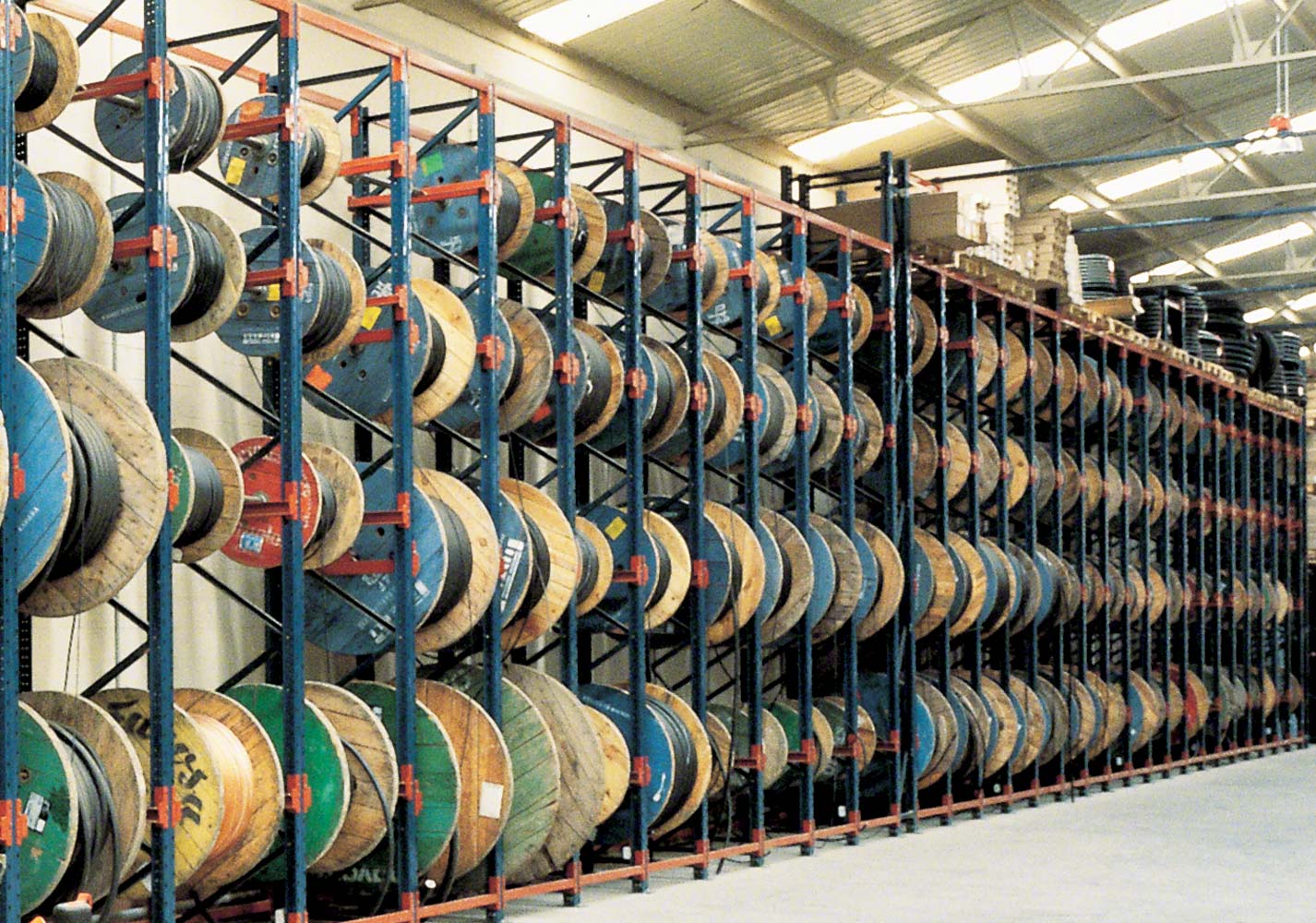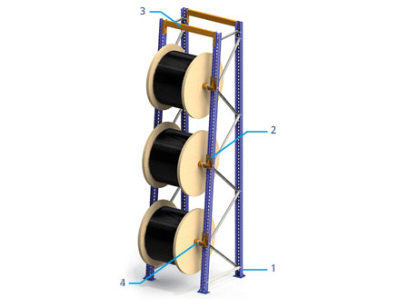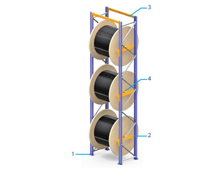 Anlagen mit Kabeltrommelregalen lassen sich leicht an die Eigenschaften, Abmessungen und die Verwendung der Waren anpassen. Es besteht die Wahl zwischen zwei Lagersystemen (frontal und seitlich), geneigten oder geraden Rahmen, verschiedenen Arten von Rahmenständern und einer Vielzahl von Anordnungsmöglichkeiten.