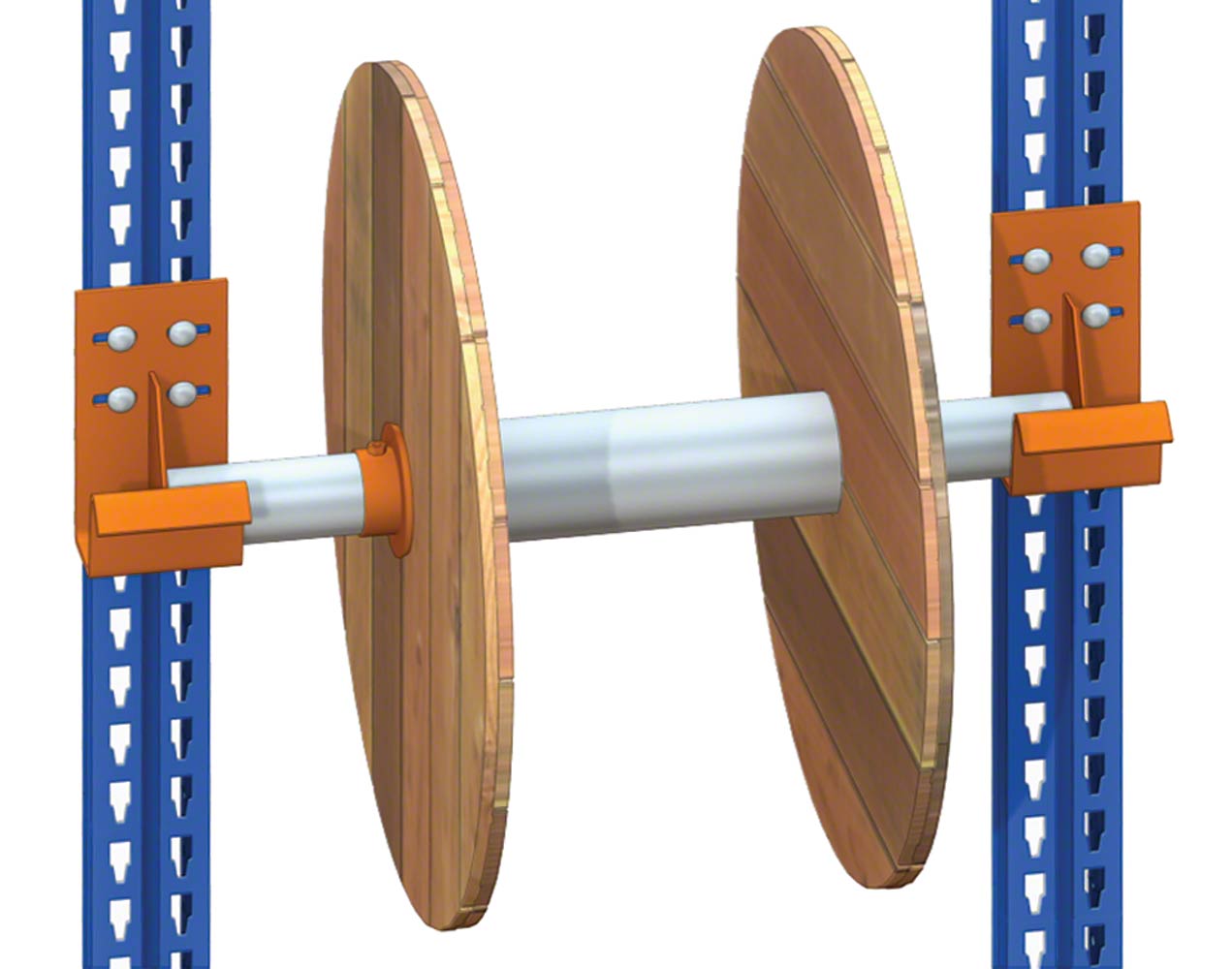 Spezielles Regalsystem zur Lagerung und Optimierung der Handhabung von Produkten, die auf Trommeln aufgerollt sind, wie Kabel, elektrische Leitungen, Schläuche, Papier, Draht usw.