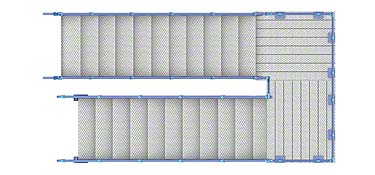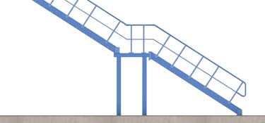 Die vormontierten Treppen von Mecalux sind einfach anzubringen, widerstandsfähig und an verschiedene Höhen anpassbar. Die für den jeweiligen Fall am besten geeignete Treppe wird je nach Anzahl der Stufen, der Breite der Treppe und der Anzahl der Handläufe ausgewählt. Die Treppen können unterschiedlich gestaltet werden: außerhalb der Struktur, im Inneren der Struktur, mit oder ohne Zwischenpodeste usw.