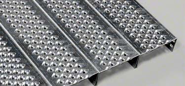 Die aus verzinktem Stahl hergestellten Metallböden bieten eine hohe Tragfähigkeit und die verschiedenen Modelle (gerillt, geriffelt, gelocht oder mit Gitter) sind mit einer mehr oder weniger gerillten oder gelochten Oberfläche versehen, je nach den Anforderungen an die Belüftung oder den Durchfluss von Wasser, wenn Brandschutzsysteme installiert werden.