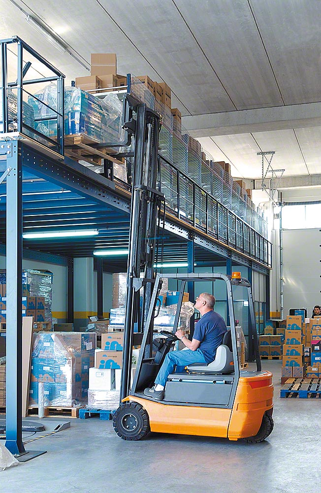 Neben den Grundelementen der verschiedenen Ausführungen bietet Mecalux eine Vielzahl verschiedener Bodentypen, Geländer und Treppen an, um den verschiedenen Anforderungen der Anlage in Bezug auf die Vorgänge und die Art der Lasten sowie auf Sicherheit und Zugänglichkeit der oberen Ebenen zu entsprechen.