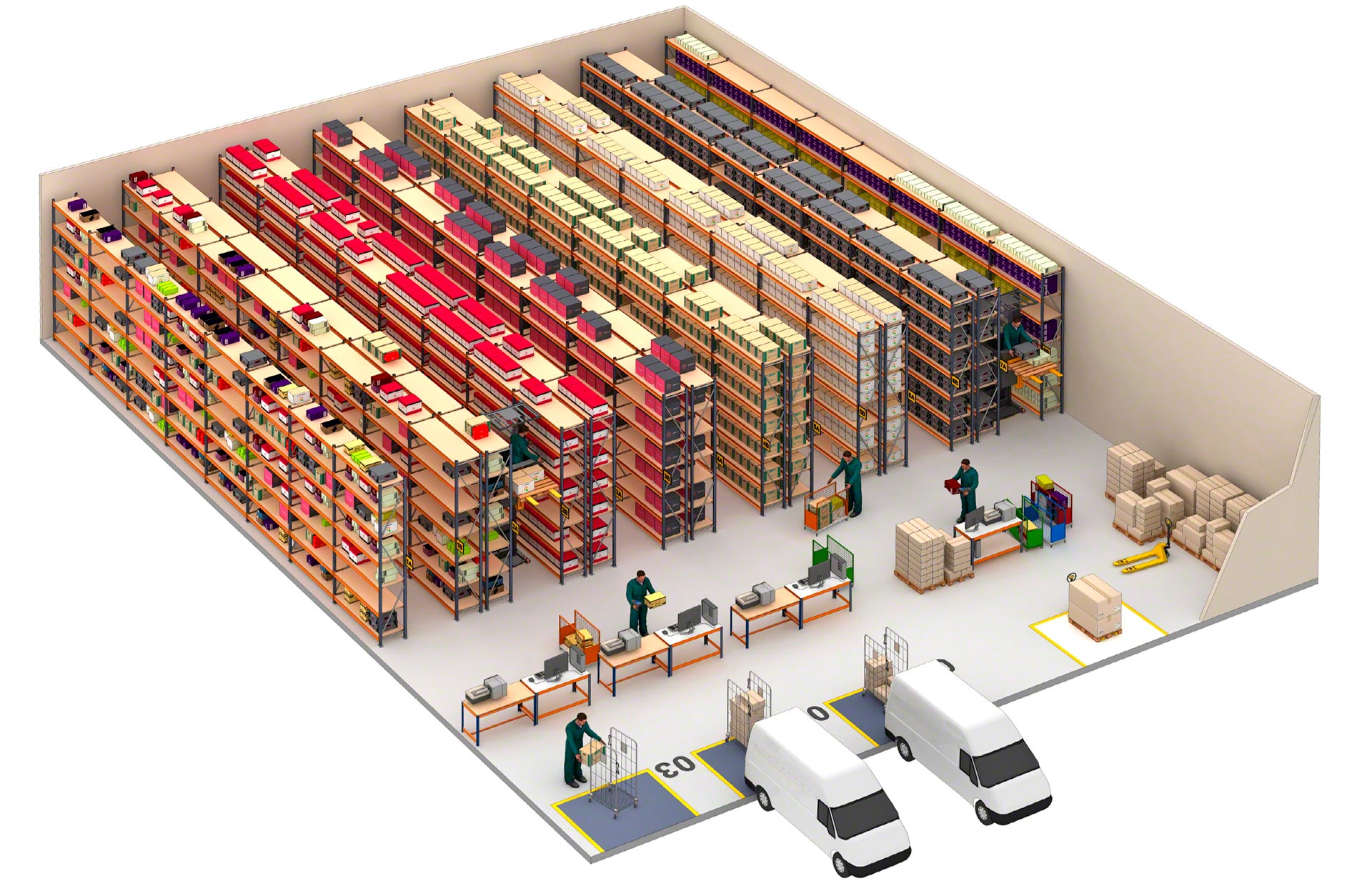 Die umfangreiche Auswahl an Zubehör machen die Mecalux Weitspannregale M7 besonders vielseitig einsetzbar