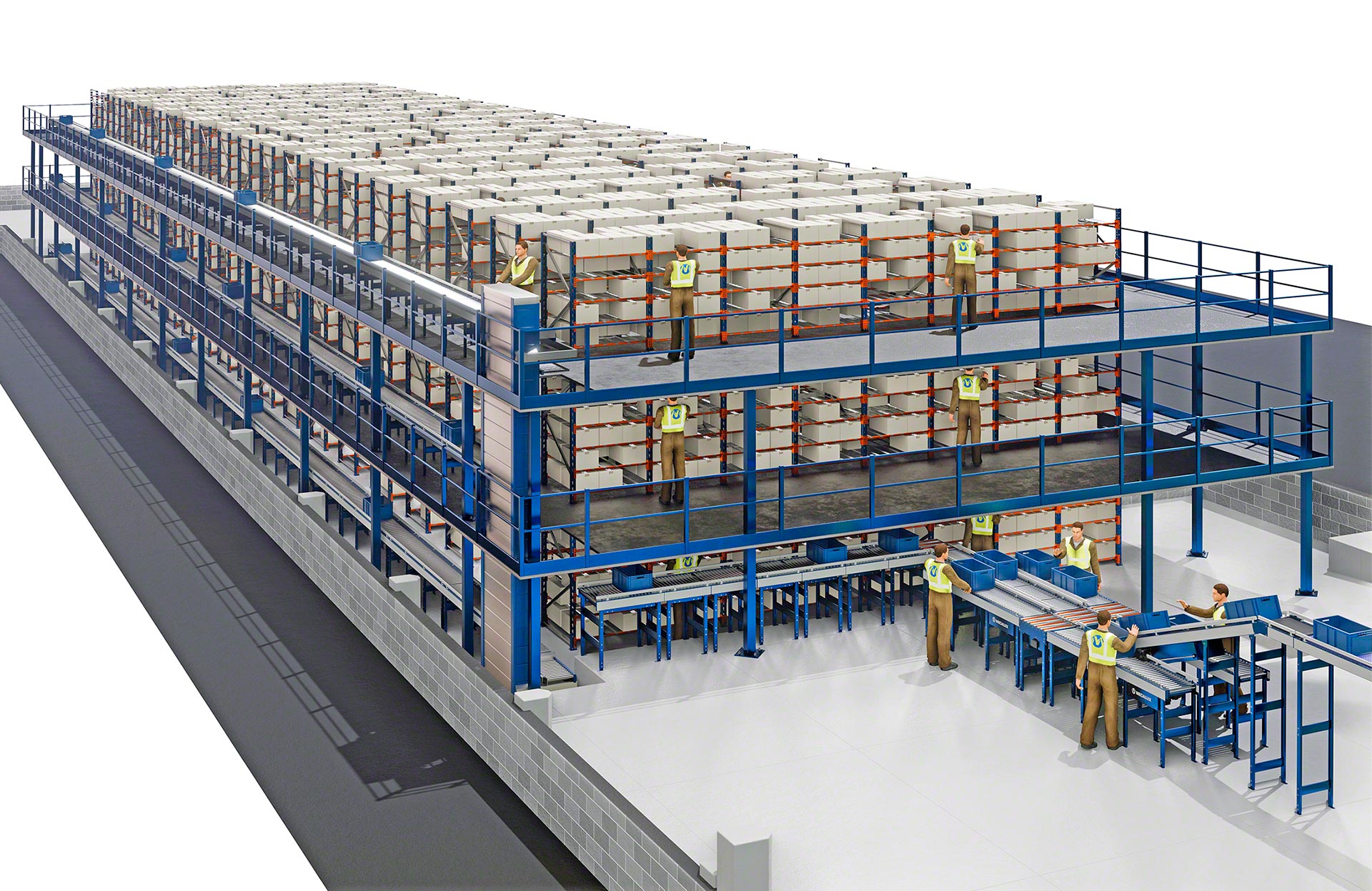 Ja, die Mecalux M7-Pickingregale können als Hochregal gebaut werden. Um die oberen Ebenen zur Ein- und Auslagerung zu erreichen, können Kommissionierstapler eingesetzt oder ein Pick-Tower-System eingerichtet werden. Mit Pick-Tower kann eine große Höhe erreicht werden (bis zu 20 m).