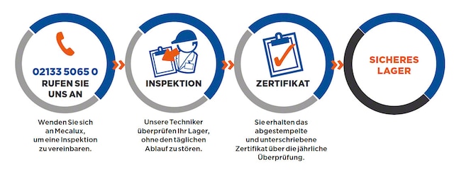 Führt Mecalux solche Inspektionen durch? Ja, seit über 30 Jahren |